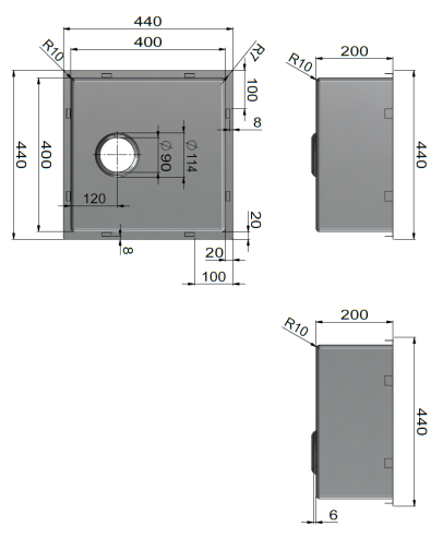 – Depth: 200 mm